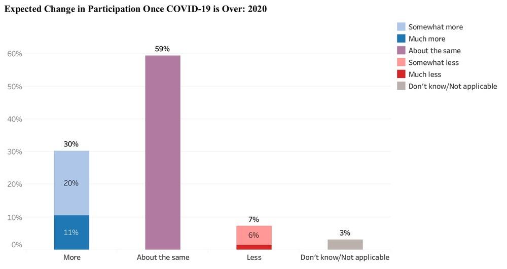 The big question answered – future gardening intent42% of gardeners say they increased gardening due to the Covid pandemic, while only 9% gardened less. 88% of gardeners intend to increase or maintain their level of gardening activity in 2021 (36% more, 52% the same), and 89% plan to increase gardening post-pandemic (30% more, 59% the same). The intent to garden more is particularly pronounced among the gardening cohorts of younger gardeners, gardeners with children, apartment/condo dwellers, and black and gardeners of color.
